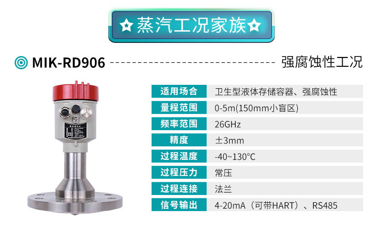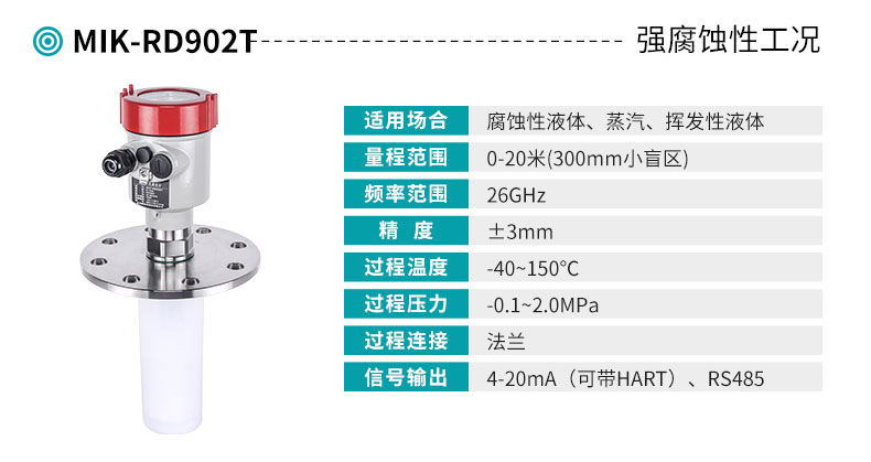 米科MIK-RD902T/906高頻雷達液位計,26G高頻系列可用于需要發射角度小精度高的場合。