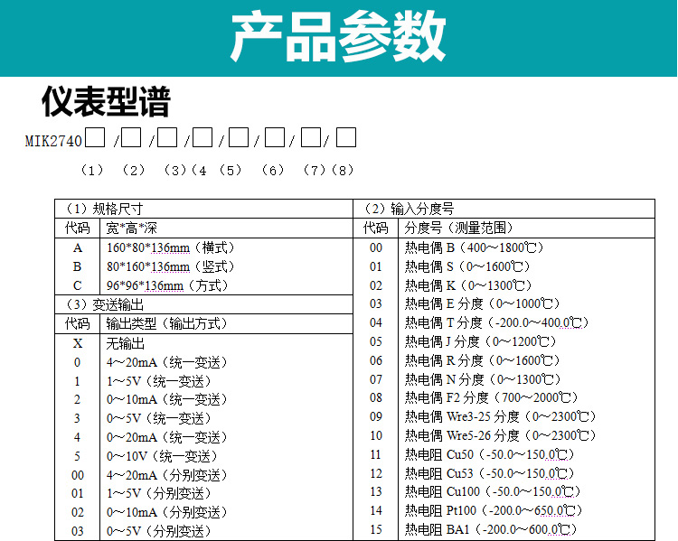 適用場合:MIK-1100系列單回路數字顯示控制儀,可支持熱電偶、熱電阻、電壓(可開方運算)、電流(可開方運算)及變送器輸入,適用溫度、壓力、流量、液位、濕度等工業(yè)過程量的監(jiān)測。